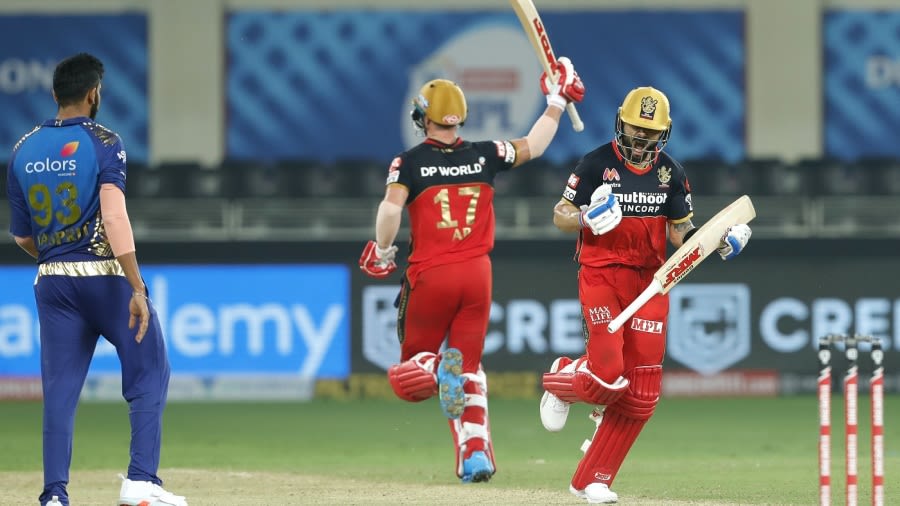 Recent Match Report Rcb Vs Mum Indians 10th Match 2020 21 Espncricinfo Com from img1.hscicdn.com Virat kohli (c), devdutt padikkal, rajat patidar, glenn maxwell, ab de villiers (w), shahbaz ahmed, daniel sams, kyle jamieson, harshal patel, mohammed siraj. Ab de villiers and virat kohli chased down the target of 8 in super over.hardik ab de villiers remained unbeaten on 55 as he and shivam dube took rcb to 201/3 in 20 overs, setting mumbai indians a target of 202 to. Ipl 2020 | ab de villiers also assured that they'll make a stronger comeback in the next season.